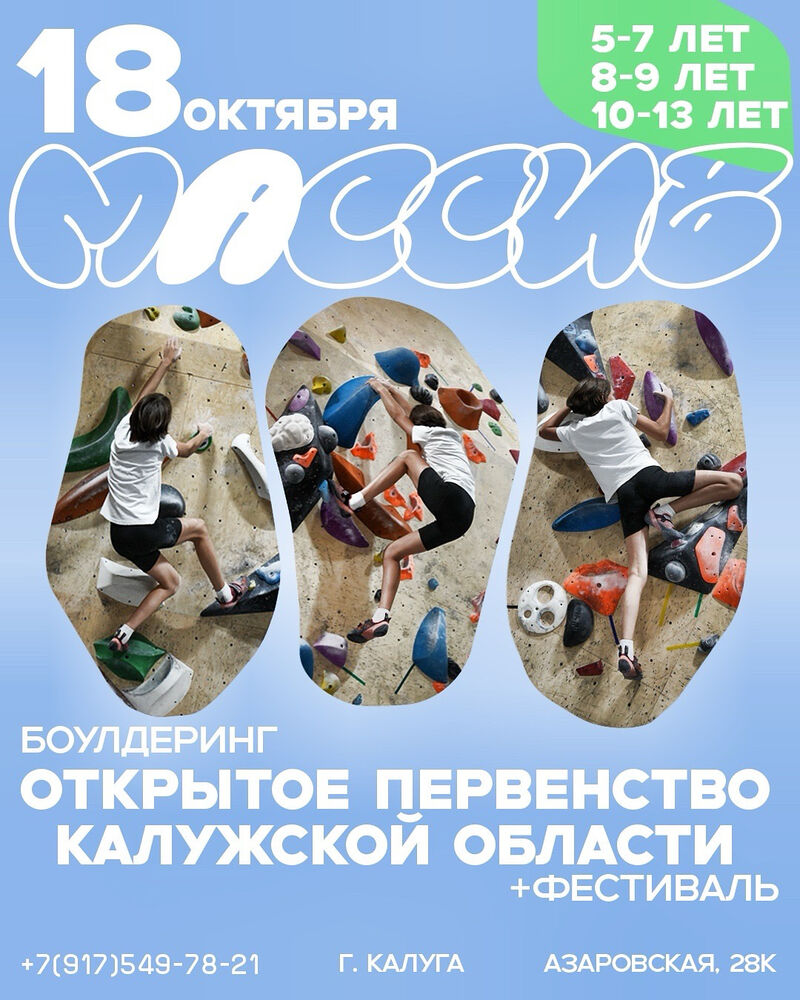 Скалодром Массив | Калуга | 18.10 – 18.10.2025 |